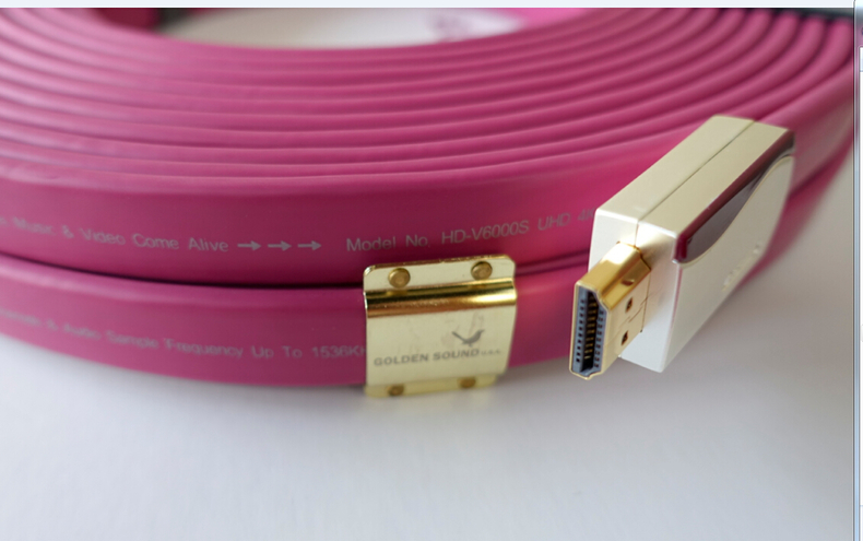 Golden Sound HD-V6000S 扁平单晶镀银线 采用24AWG镀银线制作,配合一级厂的24K镀金接头,完善的精密加工,严格的SONY 4K显示设备检测2小时后,才能以成品型式出货。我们的产品自2004年上市以来,超过9成的产品依旧能在2014年的4K设备上使用。因 为;Golden Sound 有信心及最高端的技术实力做基础,能够提供你未来5-8年的新技术考验